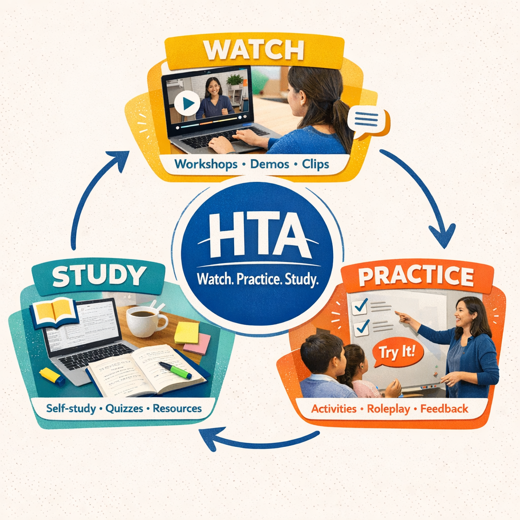 HTA exists to move teacher learning beyond one-off training, connecting ideas to classroom practice through application and reflection over time.